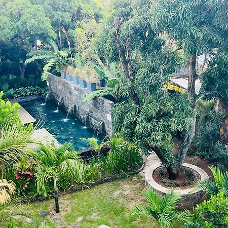 Guests can make use of Beautiful 3 Bedroom Apartment 150 Meters From Grand-Baie Beach self-catering amenities, including an equipped kitchenette, and enjoy their meals in an outdoor dining area.